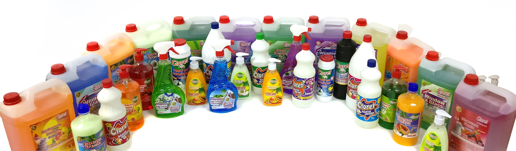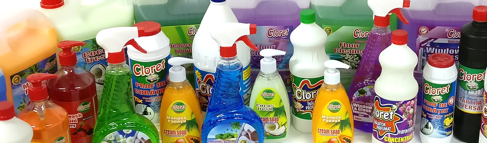 Comercializam produse chimice pe piata romaneasca din anul 1998. Principalul produs fabricat de compania noastra este INALBITORUL CLORET, acesta este prezentat in doua variante UNIVERSAL si PARFUMAT.